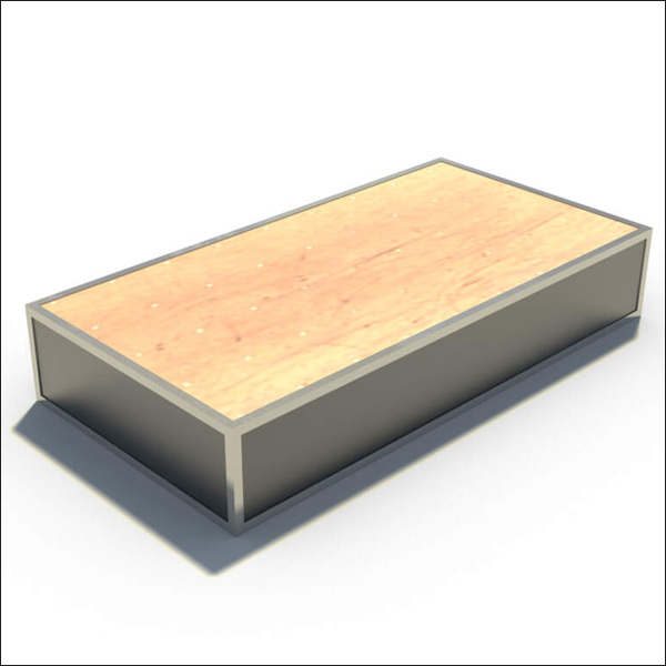 Outdoor steel flat top skate board park grind box. Features hot dipped galvanised box steel framework to EN ISO 1461 and ISO 9001 certified, with powder coated to BS EN 13438:2013 with a professional Skatelite Pro surface and 6mm aluminum plate rivets. Stainless steel surround safety barrier fencing. Suitable for outdoor all weather skateboard or BMX bicycle use.